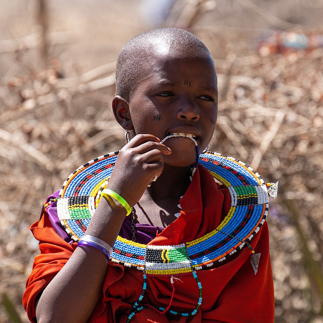 Down onto the plains, the trees become more sporadic. We still see Masai wandering alongside the dusty road, often with goats or sheep in tow. We pull off the road to visit a Masai camp. The temporary camps are built in concentric circles, often around a central tree. In the centre, bordered by a wicker fence, the animals are penned in for the night. Outside of the fence is a gap for socialising, and bordering this, small circular huts, made of branches and mud, and finally, an outer fence to keep out lions and hyena.