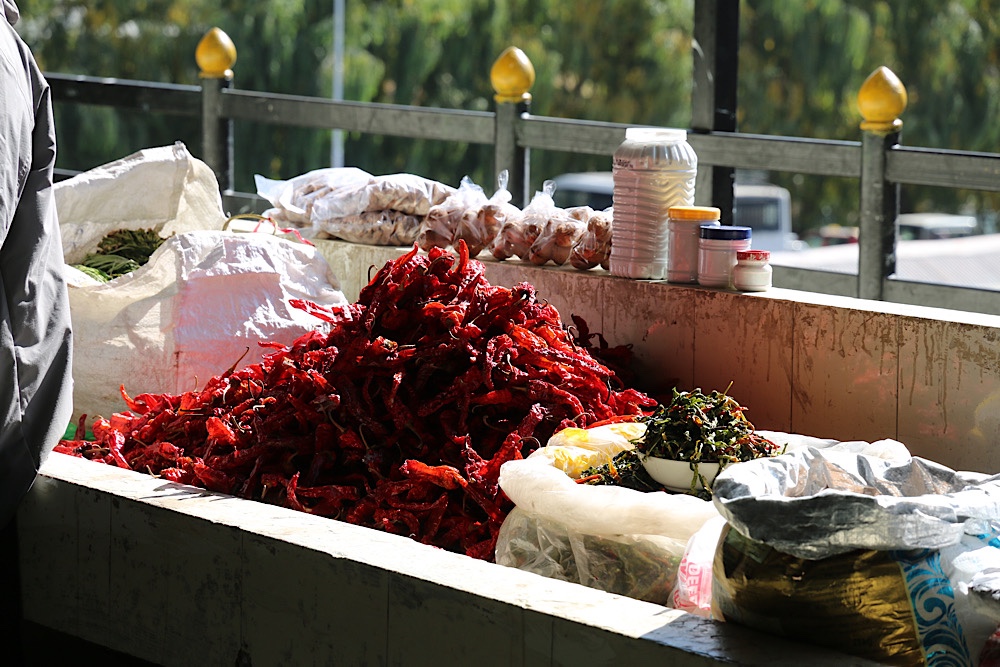Next we head to a local market, selling the 100% organic produce from local farmers; chillis feature heavily in the Bhutanese diet and we’re rewarded with dazzling displays.