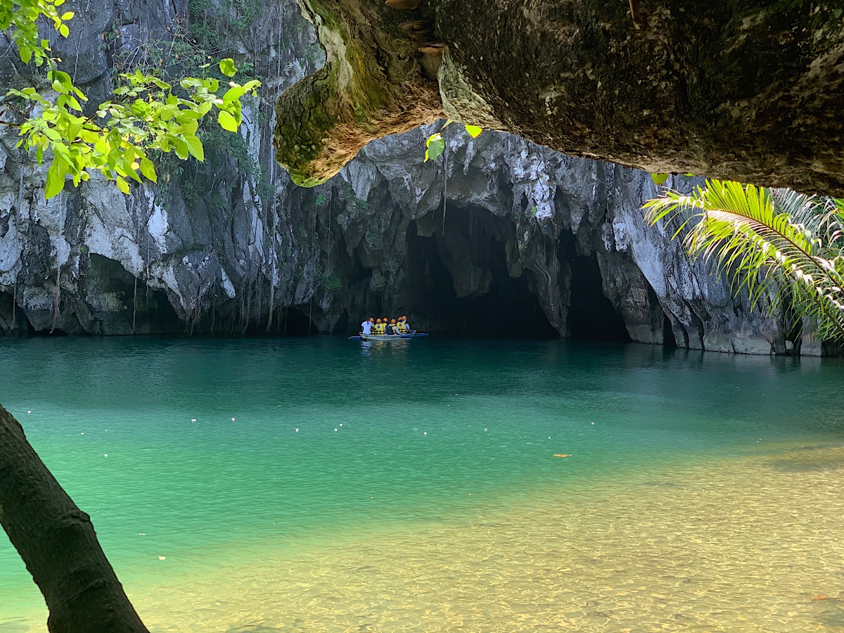 The following morning, we’re collected by bus for a 2 hour hot, winding journey to the entrance to the Puerto Princesa Subterranean River National Park. This was voted as one of the New7Wonders of Nature in 2012 and is a UNESCO World Heritage site. We transfer from bus to a local trimaran, and in the choppy water, the wiry captain ferries us around to the secluded beach which marks the sea delta to the river.