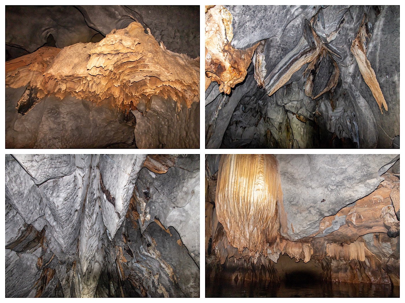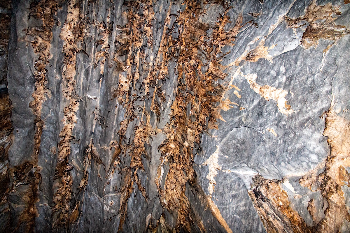 As we penetrate inside the cave, the flap of wings are the first thing we hear. Expecting bats, it’s actually swallows nesting in the still-lit entrance to the river. Casting deeper inside, the beat of swallows wings are replaced by the echo-location calls, and leathery whispers of bats. Looking up, thousands of tiny bats, feasting only on mosquitos, line the crevices in the massive stalagtites hanging from the ceiling. We’re warned to keep our mouths closed when looking up. Cold drips are a blessing, warm drips are not.