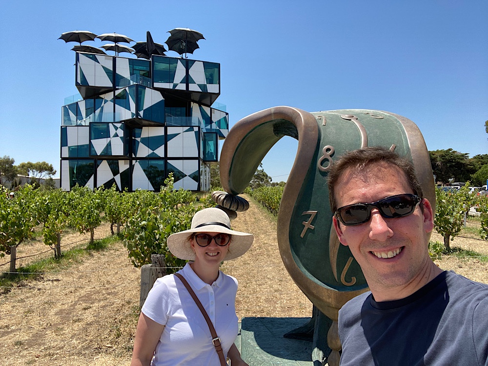 The following day, we took the car on a tour of the McLaren Vale wine region. We drove an hour or so south, and stopped at a couple of vineyards for wine tasting and lunch. It was a very pleasant way to spend a couple of hours. Even teetotal Shona enjoyed it! She also bought a hat (it’s reaching 40ºc today).