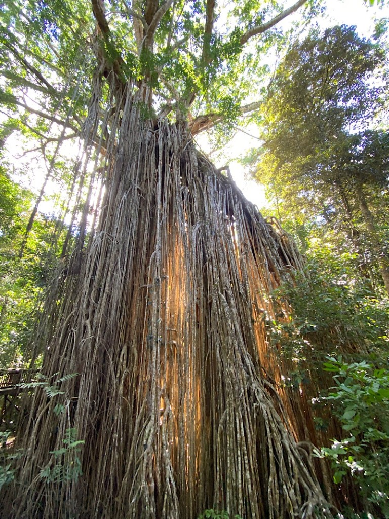 One of the most notable environmental differences in Australia (aside from the heat!) are the sounds. Birds yell with whoops and chirps, with a tunefulness not common in other parts of the world. Parrots, and Cockatoos are wild here; there is colour in every tree. The ubiquitous Australian Magpie in particular is a chatty fellow in the towns and cities, and sounds like he was sampled for Star Wars weapon sounds: “peeeooow, peeeooow”. But in the rainforest, aside from the worrying cracks and rustles in undergrowth either side of you, the enduring sound is that of cicadas flooding the air with wave after wave of their song.