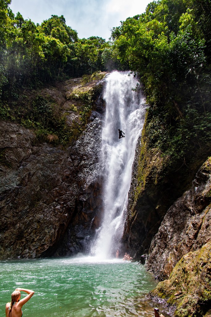 We wound our way through the Fijian rainforest, hillsides dripping with dense green foliage, and flood plains of the river dotted with huge explosions of bamboo. After motoring our way through several rapids, we were dropped off at a landing spot and walked into the jungle, up a path to a huge waterfall. Here we swam and clambered our way around the cliff side, under the torrents. Our guide, Ziggi – a muscular chap in his 20’s disappeared up the sheer cliffside, and was next seen leaping from around 30m up into the pool under the falls. It was amazing that he didn’t injure himself, but it wasn’t his first rodeo.