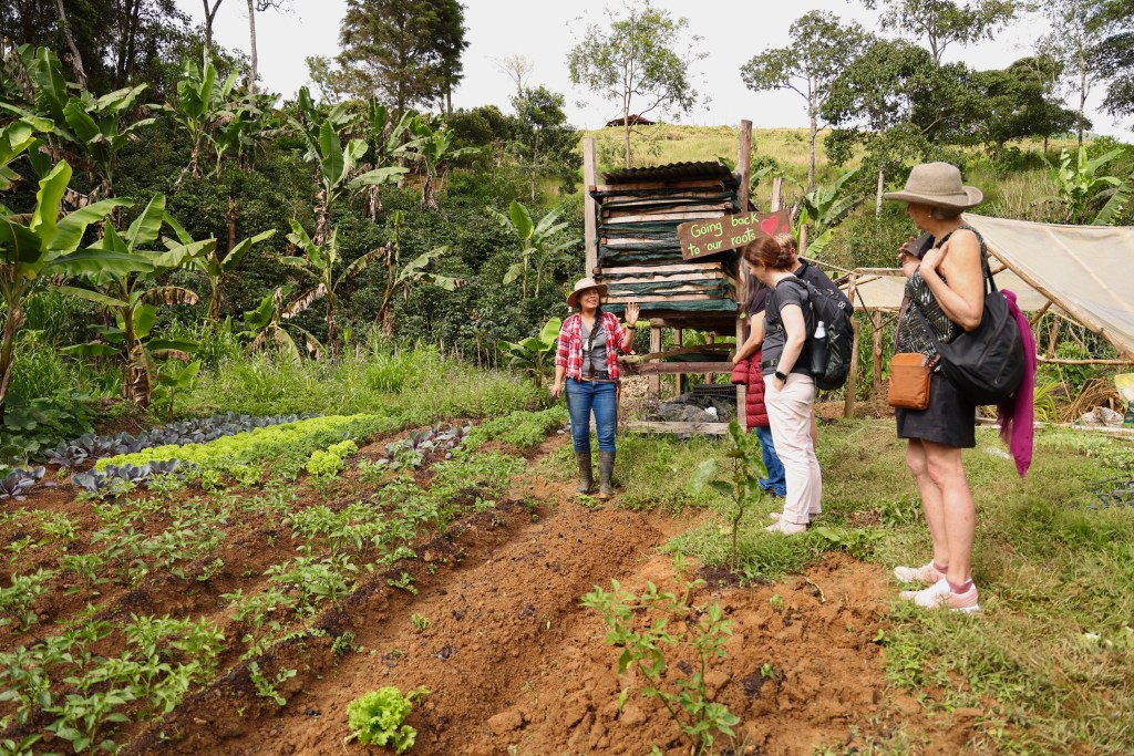 Leaving San Jose, we hopped in our small bus and headed up into the mountains to visit a family-run coffee plantation. Minor, Lucinda and little 3 yr old Ruth run this delightful farm at 1400m elevation. A number of years ago, Minor met a Canadian professor who was researching organic agriculture. With his help (and a 3-month trip to Canada for Lucinda to learn English and the essentials of tourism), they decided to convert from chemical pesiticides and fertiliser to organic farming. Using microbes from the forest floor, Minor seeds the brewing of natural fertiliser in large drums, adding various organic materials, until a rich soup is ready for watering the crops. They grow almost all their own food, and open their little farm up to tourists like us. We ate a wonderful fresh lunch of rice, beans, tacos, chicken and salad, along with an amazing salsa.