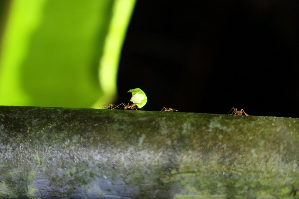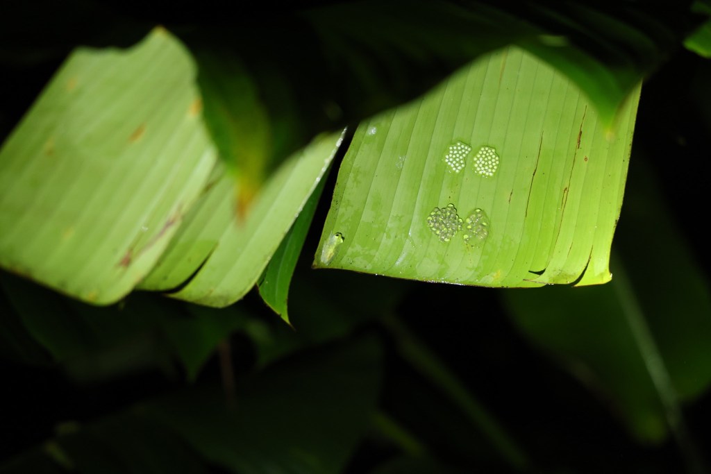 But the objective of tonight’s hike was frogs. Our guide studies frogs and knows exactly where to look. He shows us transparent Glass Frogs mating or looking after their young, and a Poison Dart (Granular) Frog – simply touching the skin of which will stop your heart within minutes. We spend a good 30 minutes hunting for the iconic Red-Eyed Tree Frogs (of Life on Earth fame)… sadly, while we could hear them, we never spotted one. The walk was fascinating, and more than a little bit creepy – there are large spiders everywhere. After spotting a couple, José told us to hold our torches to our noses and look ahead. Scanning the riverbanks, tens of little green eyes reflected back at you – each belonging to another spider.